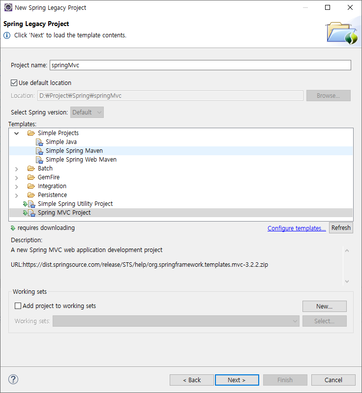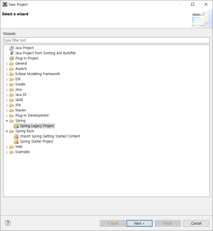 자 이제 전에 안보이던 Spring Legacy Project를 생성합니다